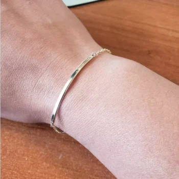 The plain polished surface of the Elegant Gold Bracelet reflects light beautifully and gives it a luxurious look. This bracelet will look great with any outfit, casual or classic. It will add a delightful touch to your natural beauty and boost your confidence.